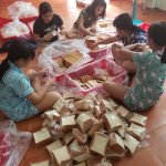 Hành động nhỏ – tấm lòng lớn. Các em có được bài học về tình người, về sự san sớt, sẻ chia. Một ngày lao động đã trôi qua đầy ắp niềm vui và vất vả khi các em cùng nhau cắt từng ổ bánh, đóng gói và phân phát !